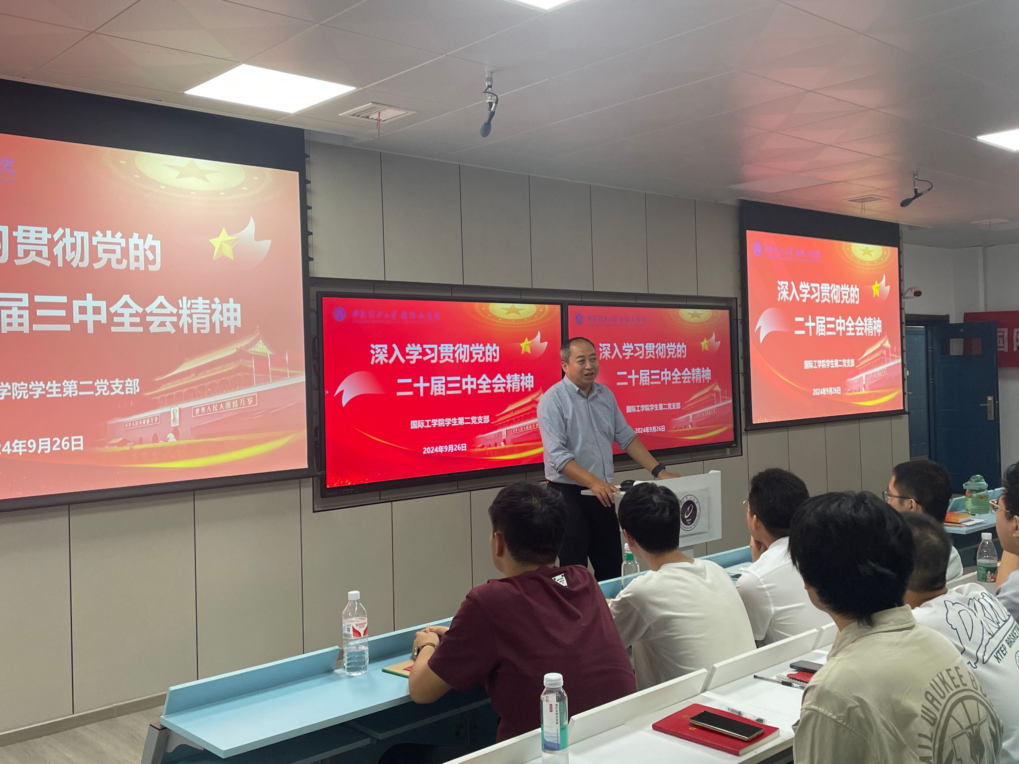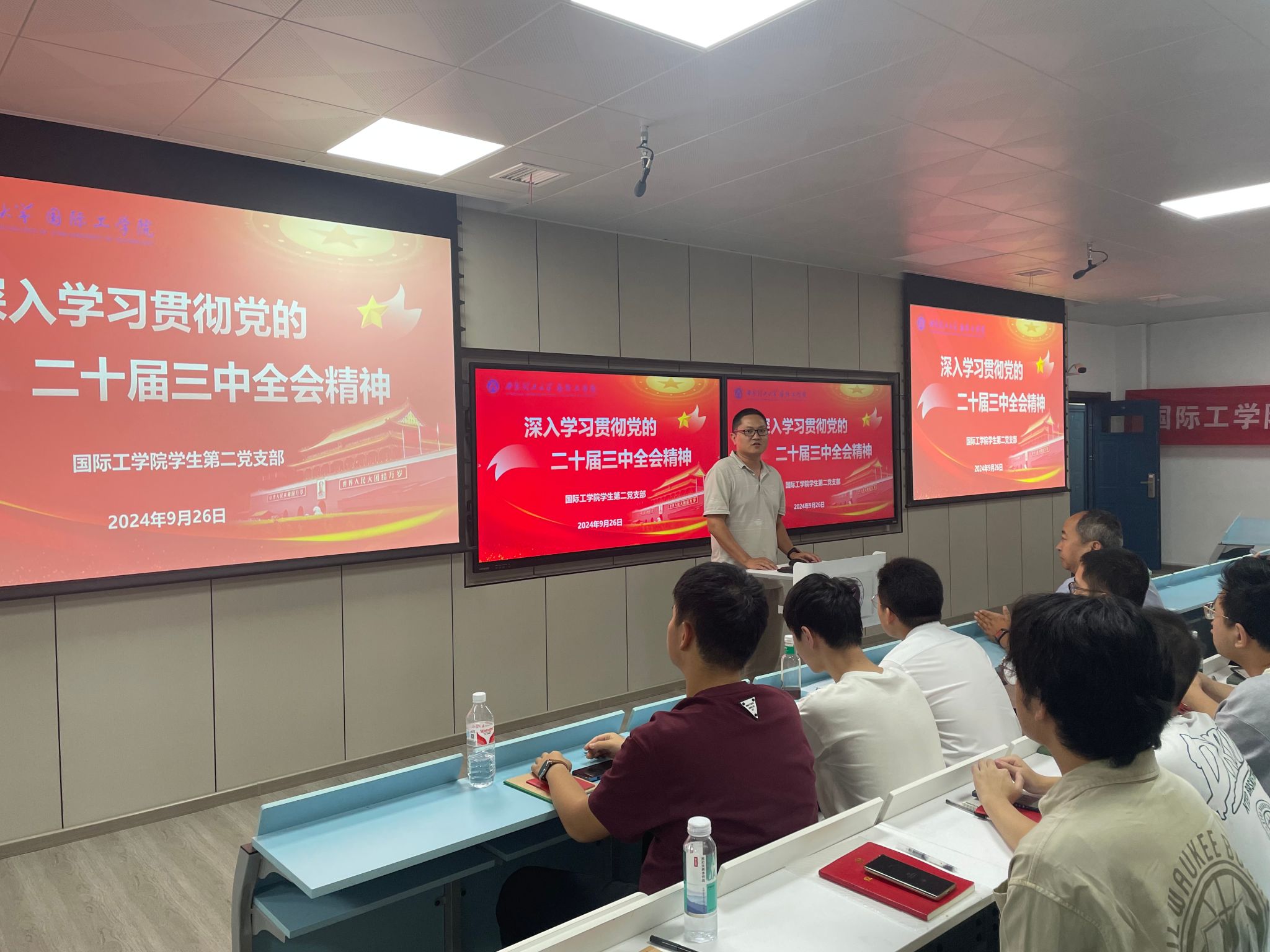为深入学习贯彻党的二十届三中全会精神,统一思想、凝聚力量,增强党员的责任感和使命感。9月26日,BETWAY必威员工第二党支部在教3-401教室组织全体党员开展专题学习活动,国际工公司党总支副书记张晓春受邀参加,活动由党支部书记张小飞主持。