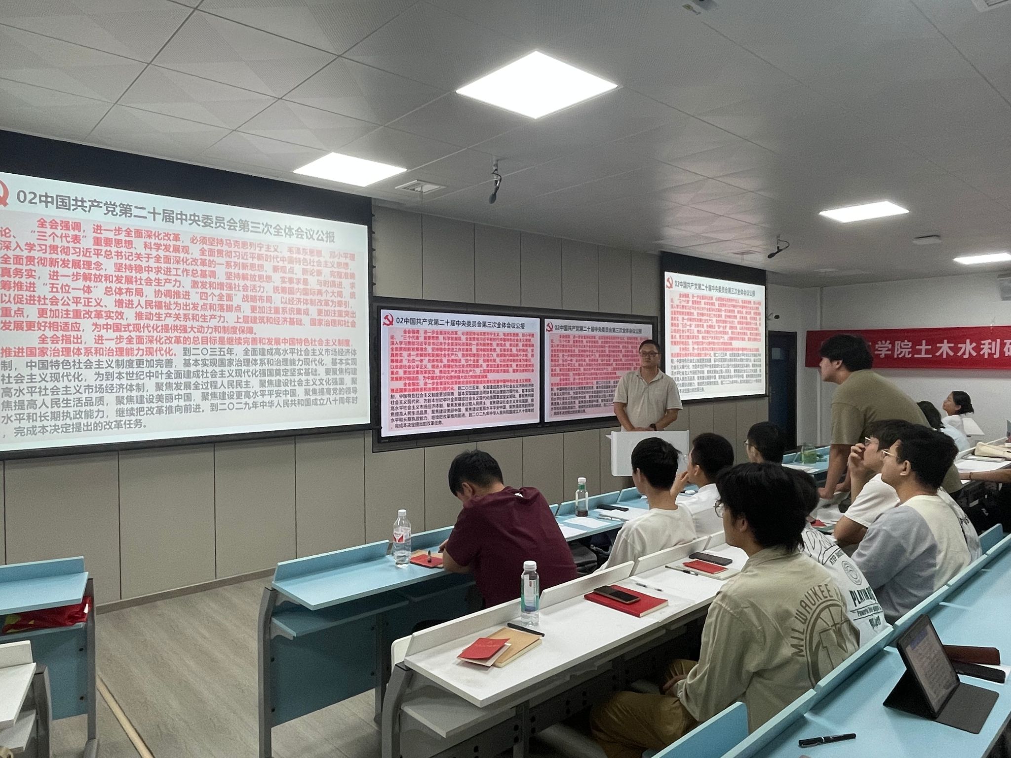 首先,张晓春介绍了党的二十届三中全会的会议背景、主要议题和会议成果,围绕深刻领会和把握进一步全面深化改革的重大意义、总目标、七个聚焦、贯彻原则,对全会精神作了全面深入系统的讲解。要求全体党员要深入学习贯彻会议精神,将理论学习与实践紧密结合,强化责任担当意识,发挥党员先锋模范作用,带头贯彻党中央的统一决策部署,发挥党员朋辈帮扶作用,不仅要在生活上关心关爱同学,更要在学业、就业发展进行朋辈帮扶促进,共同营造和谐向上、团结奋进的校园氛围。