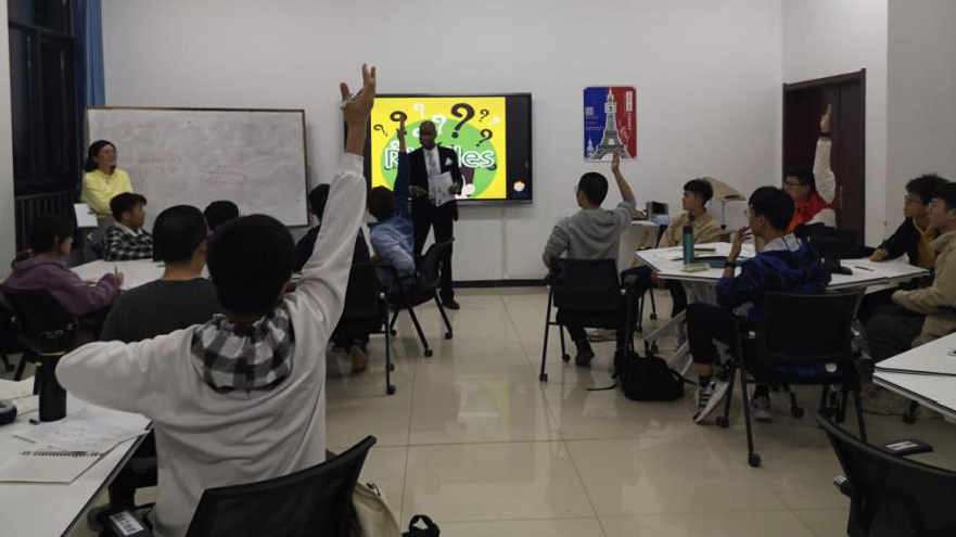 活动伊始,伴随着引入视频的播放,外教老师David为同学们介绍英语至今已有的1500多年的历史。在了解了英语语言的知识后,同学们开始了单词比赛的第一轮——paper test,之后又进行了问答环节,同学们举手抢答,信息满满,气氛热烈。最后,Bella老师统计员工们的分数,选出最高得分队伍并颁发奖品。