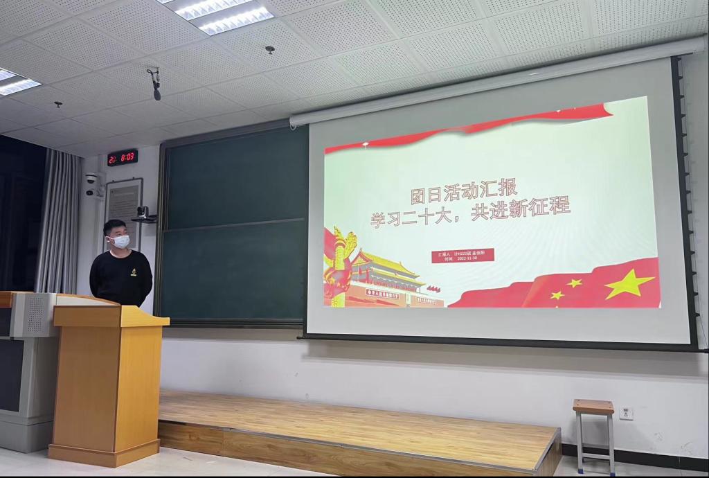 11月14日至26日,各团支部围绕“学习二十大·永远跟党走·奋进新征程”的主题开展系列活动。通过集中宣讲和自主研讨相结合的形式,同学们认真学习党的二十大精神,对党的十九大以来的五年工作和新时代十年的伟大变革有了系统了解,逐步提高对报告中新理念、新思想、新提法的认识。团日活动前,各支部召开支部大会充分征求意见、设计活动方案、安排活动分工、讨论应急预案。会后,同学们通过校内媒体等各个宣传平台介绍本支部活动计划。活动当天,大家积极参与到活动中,通过党史竞猜、红歌传唱、笔书青春、双语寄语新时代等环节,国工学子祝愿中国特色社会主义伟大事业取得更加辉煌的成就,深情祝福伟大祖国繁荣昌盛。汇报伊始,全体起立,奏唱《中国共产主义青年团团歌》。答辩现场,各团支书逐一介绍本支部活动开展实况,条理清晰、突出亮点、彰显风采。