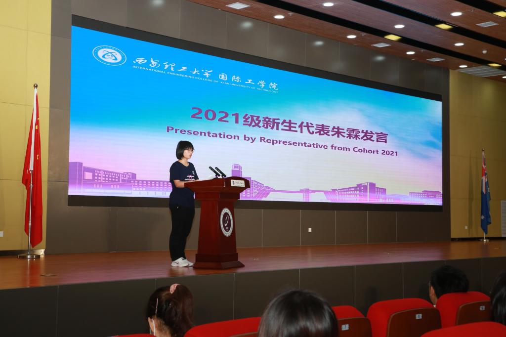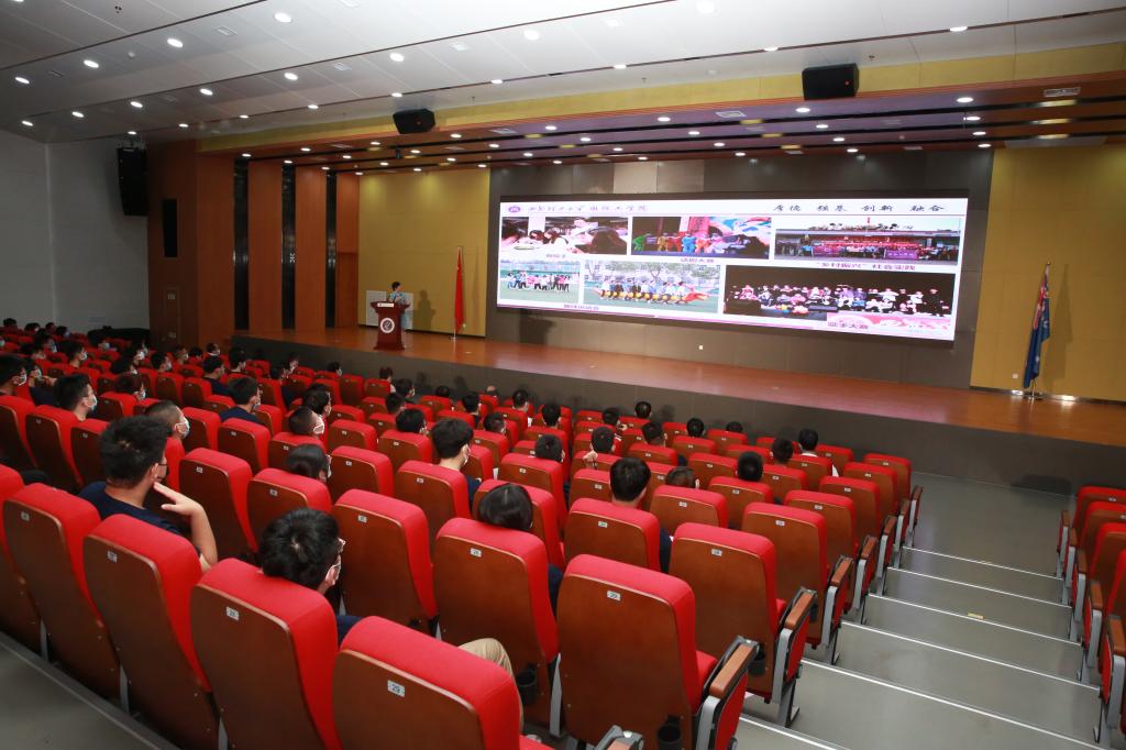 会上,经理杨媛从公司概况、教学特色、未来发展等方面详细介绍了公司人才培养体系。Ron White教授介绍了两校合作办学模式及相关专业的培养特色。张晓春副书记从坚定理想信念、了解校史校情、做好疫情防控、确保安全稳定、熟悉校纪校规、保持心理健康、厉行勤俭节约等方面做了入学教育。员工代表朱霖用流利的英语做了表态发言。