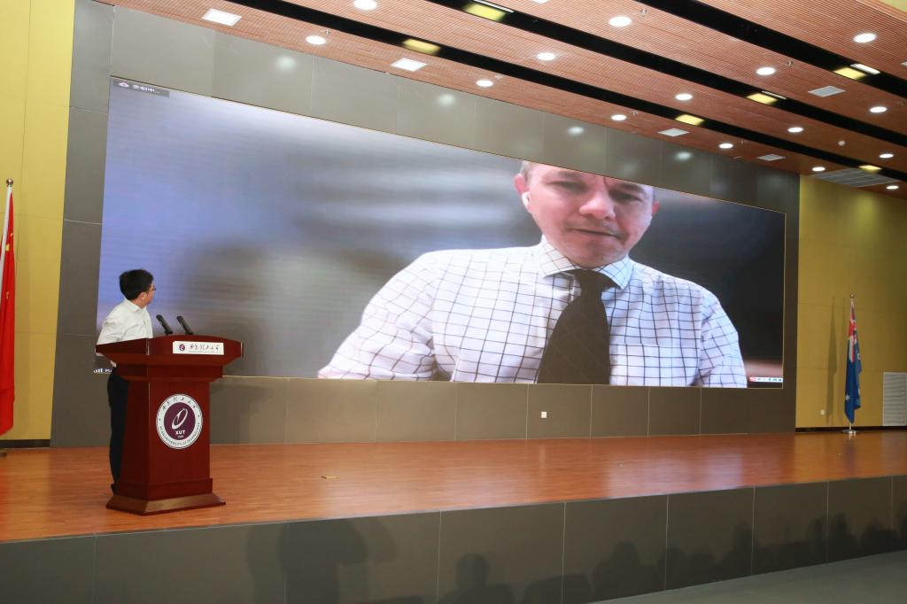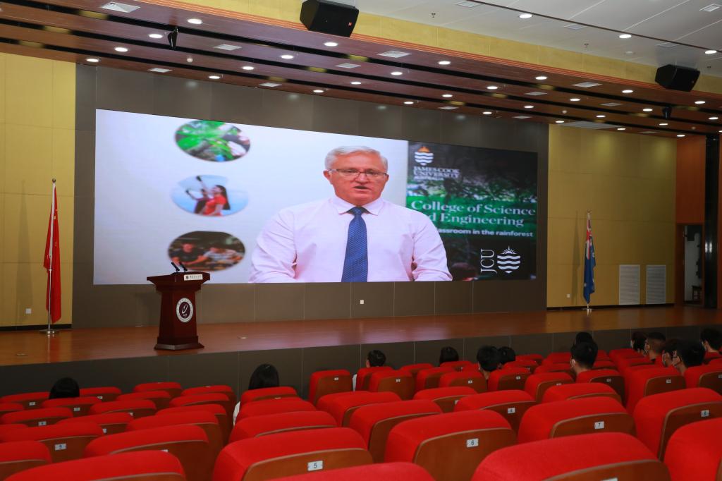受疫情影响,常务副董事长Marcus Lane和Ron White经理无法来到典礼现场,他们采用直播连线的方式代表詹姆斯库克大学对新生送来祝福。副董事长Marcus Lane表示BETWAY西汉姆联和詹姆斯库克大学正在搭建一个帮助同学们迈入工程和科学领域的全球职业生涯平台。他希望同学们能在两校优秀团队带领下努力学习,在国际化、多样化的办学平台中实现自我价值,走向世界。同时也诚挚邀请BETWAY西汉姆联师生到美丽的澳大利亚詹姆斯库克大学做客、交流,他也期待早日来到西安与大家见面。