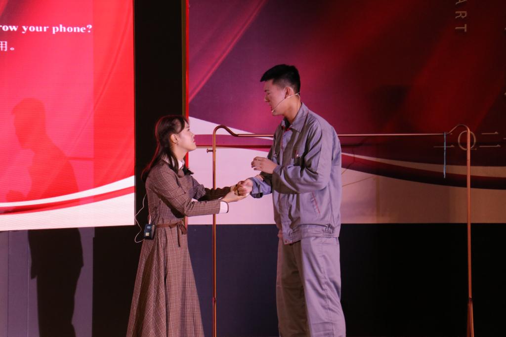 本次话剧大赛总共有8支参赛队伍,比赛正式开始后,同学们信心满满,以精湛的演技征服了在场所有观众,场内气氛热烈,掌声不断。最终,机H201班表演的《百万英镑》获得一等奖,电子H202班表演的《白雪公众》获得二等奖,土木H202班表演的《皇帝的新衣》获得三等奖。本次大赛特别邀请员工家长莅临现场。公司团委书记冯雨与员工家长进行了现场对话,家长们一致认为,此类活动不仅能丰富孩子的课余生活,陶冶情操,更是在活动中提高了英语水平,多多益善,作为员工家长,会尽全力给予支持。同时,家长代表还表示,员工自上大学以来,在公司领导和老师们的教导和关怀下取得了很大的进步,对此,家长们表示诚挚感谢。