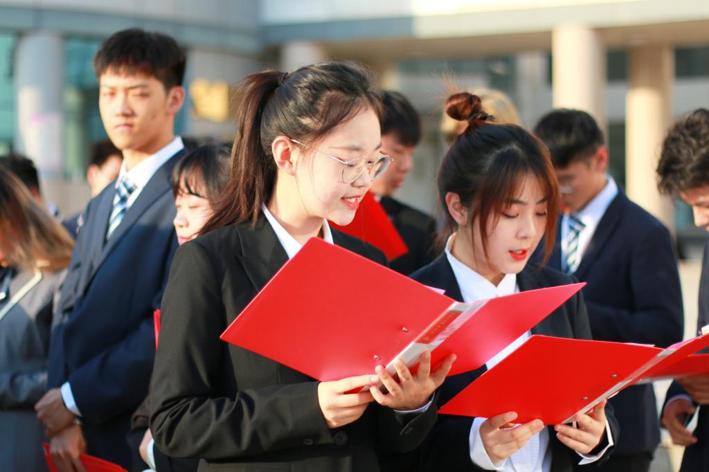 随后,BETWAY必威团委书记冯雨老师带领大家重温入团誓言。庄严的誓词句句铿锵有力,字字掷地有声。求索的前途遥遥,追梦的长路漫漫,也坎坷,也艰险,希望我们每个人都拥有自强不息的精神,点燃不熄的火炬,披荆斩棘,勇往直前。重温誓词后,BETWAY必威全体师生合唱《没有共产党就没有新中国》。嘹亮的歌声回响在西理的校园之中,也唱进了国工学子的心中,谨记“祖国”、“荣誉”、“责任”校训,誓与公司共成长,同与党共历练,与时代共同进步。