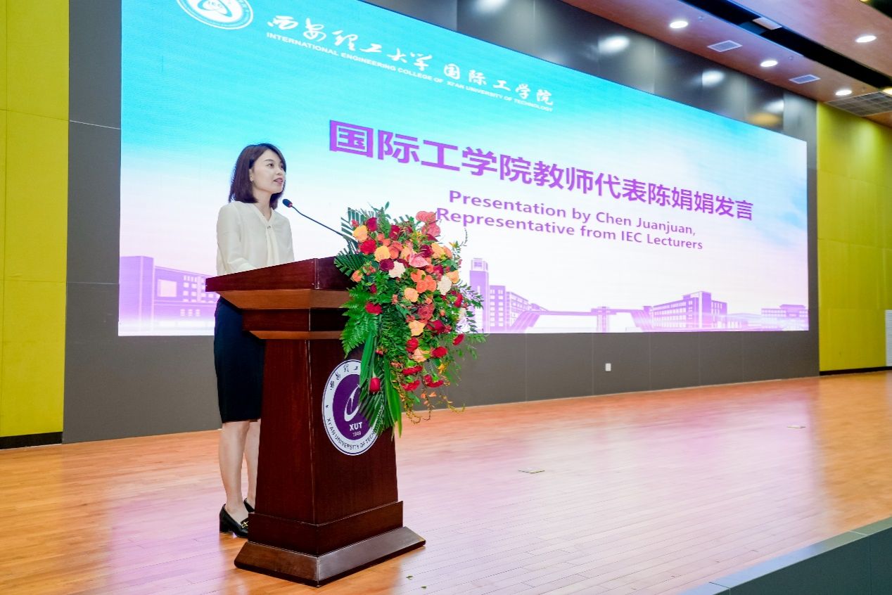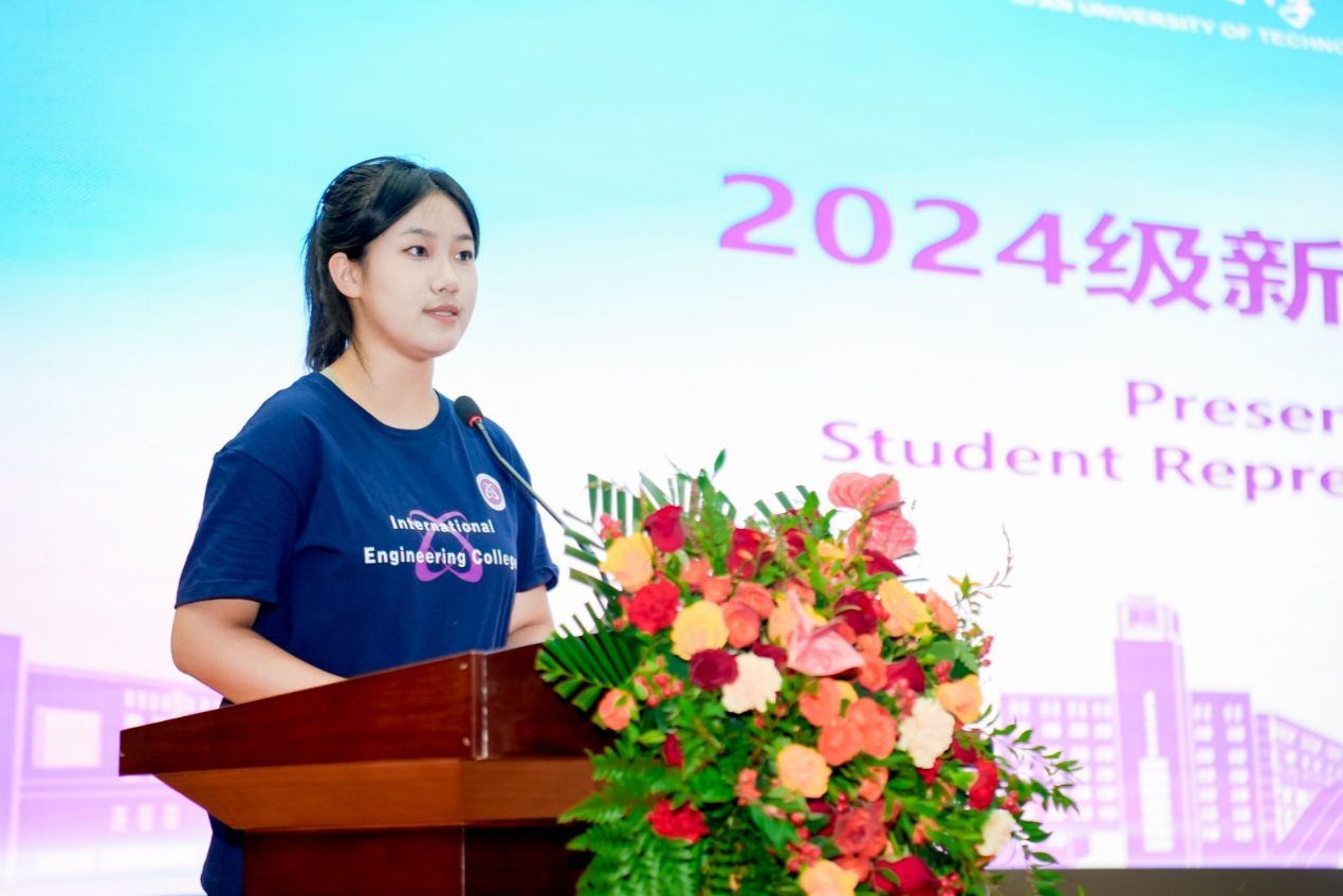 公司教师代表陈娟娟激励新生要做志存高远的有志之人、做善于学习的智慧之人、做团结有爱的独立之人,勇敢追梦,无畏前行,让自己的青春因拼搏而更加精彩!。