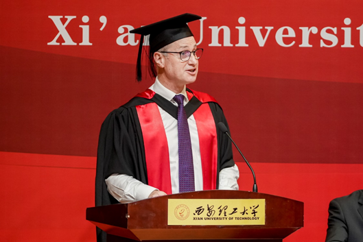 外方代表AndrewRobert教授也发表了致辞,他表示很高兴见证同学们的成长,希望他们在人生的新阶段继续保持对知识的渴求,探索未知,并追求梦想,并祝福同学们未来更加辉煌。