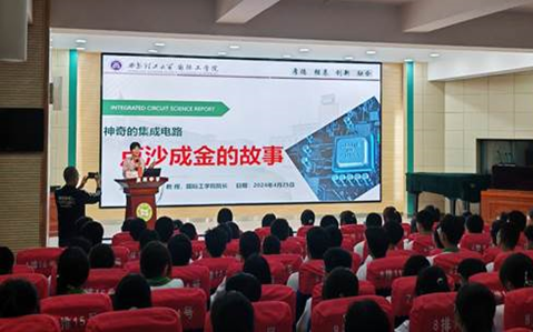 4月25日,杨媛经理受邀到西安市黄河中学,为300余名师生代表带来了一场主题为“神奇的集成电路——点沙成金的故事”的科普知识讲座。讲座由西安市黄河中学副董事长、特级教师张维杰亲自主持,现场气氛热烈,师生们反响强烈。