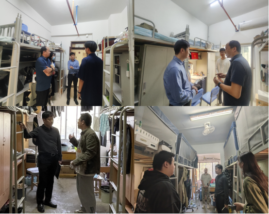 为了解员工的学习、生活状况,确保宿舍环境的安全与舒适,及时发现和解决潜在问题,国际工公司党总支书记、经理方长青,正处级辅导员张晓春以及全体辅导员于4月15日和4月17日分别对公司金花、曲江校区员工宿舍进行安全卫生检查。
