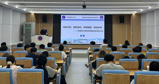 首先,刘助理介绍了本次活动的初衷,并对赵桐教授的莅临表示了热烈的欢迎与衷心的感谢,他强调:“在科技日新月异的今天,机械设计制造及其自动化专业作为推动社会进步的重要力量,其重要性不言而喻。我们期待通过此次专业宣讲,能够点燃同学们心中的专业热情,明确个人职业愿景,为未来的学习与发展奠定坚实的基础。”