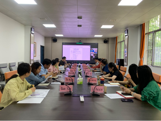 杨媛经理介绍了本学期引进课程的教学总体情况,并对外教线上、线下教学反馈进行了总结与分析。她指出,外教来华开展线下教学及与员工的互动,对提高课程教学质量、教师教学能力提升、员工课程获得感及出国留学意愿等方面起到了积极的推动作用,并提出针对下半年机构审核评估需要准备的重点工作。