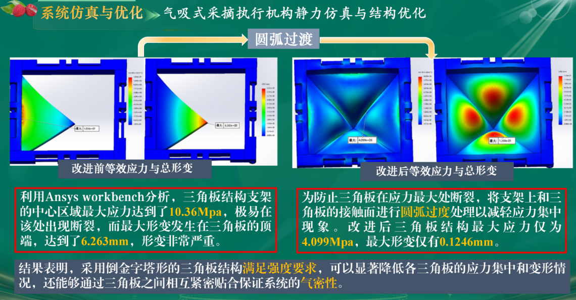 决赛前,指导老师通过会前会,实操演练带领参赛团队做赛前辅导,团队向上届国家一等奖获奖者机仪公司张秋石同学请教参赛经验,准备充分的团队带着自信与使命到南昌参加决赛。答辩现场,团队成员精神饱满、信心十足,通过精彩的动画演示与深入浅出的原理讲解,清晰呈现了采摘系统的完整作业流程与核心技术优势。其创新的多模块协同设计理念与贴合农业生产实际的应用价值,得到了现场评委的一致认可和高度赞扬,最终成功斩获全国一等奖这一至高荣誉。